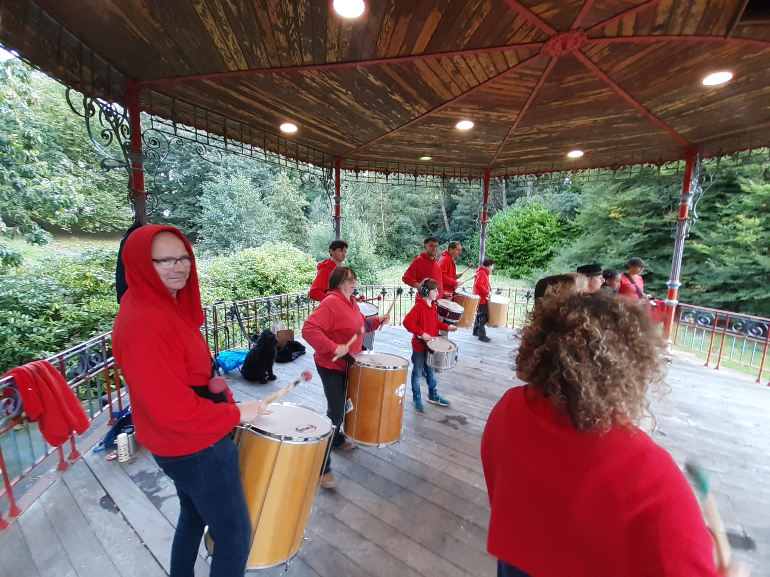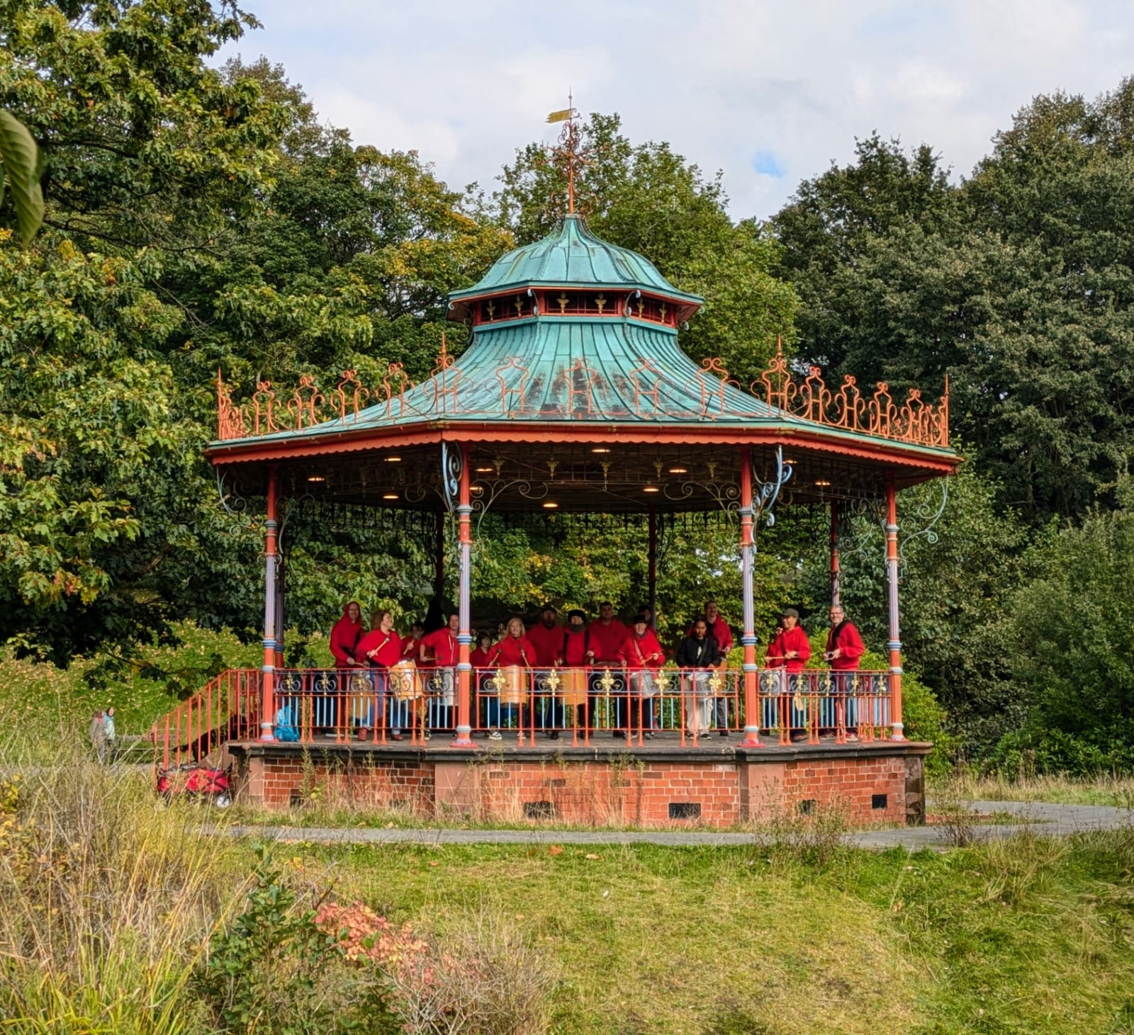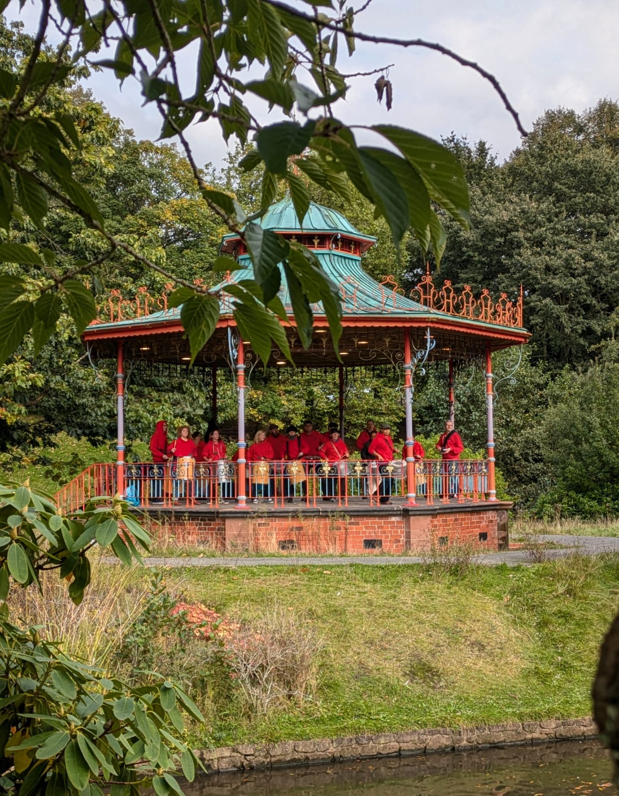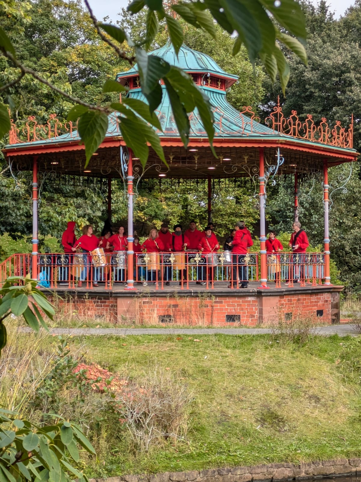 The band were allowed onto the bandstand in Sefton Park upon an island, where they played two sets to appreciative passers by in the park.
