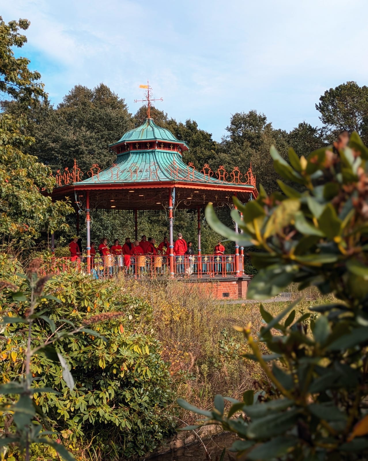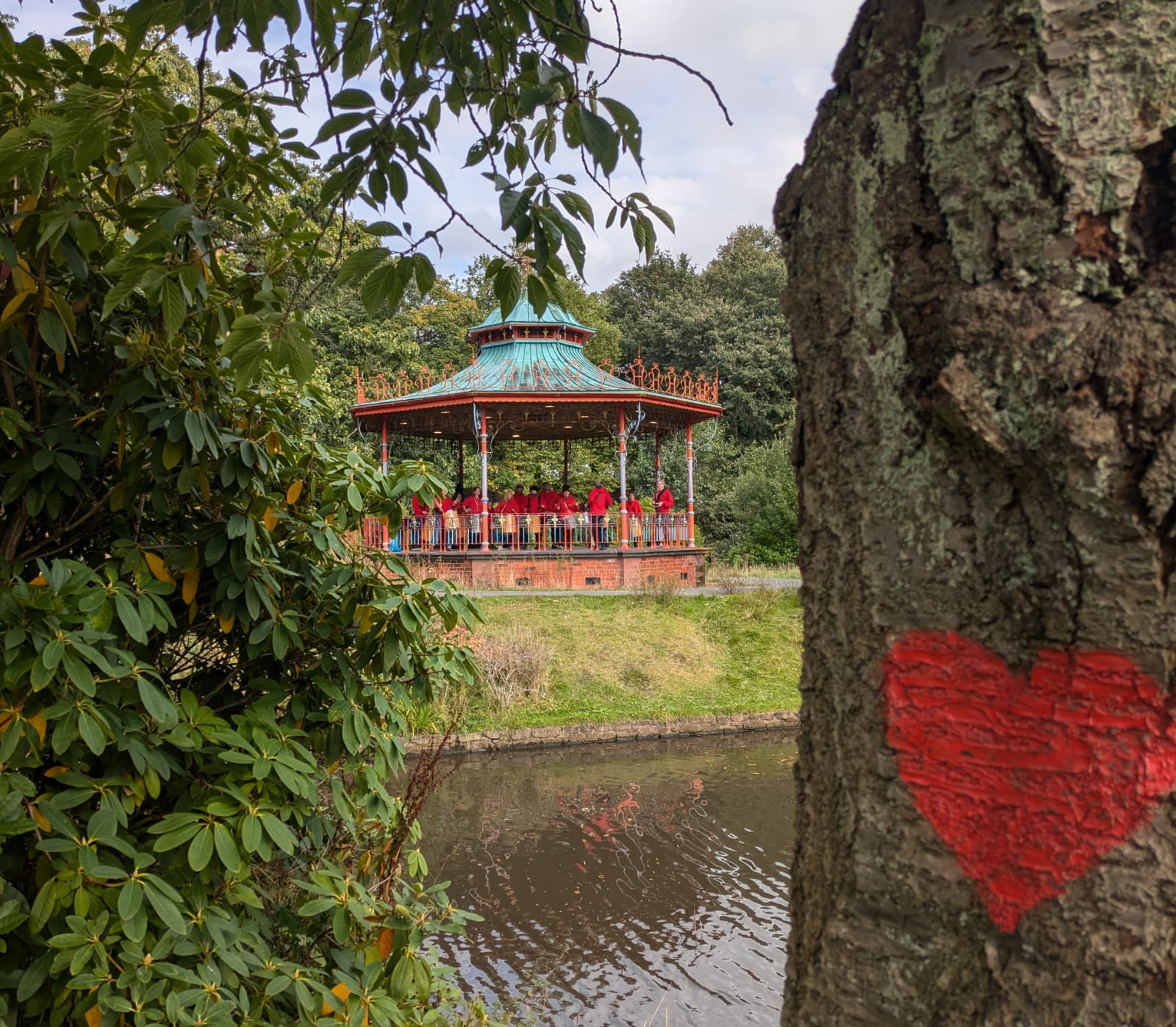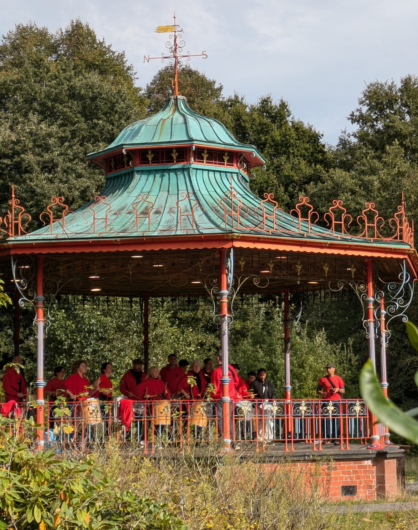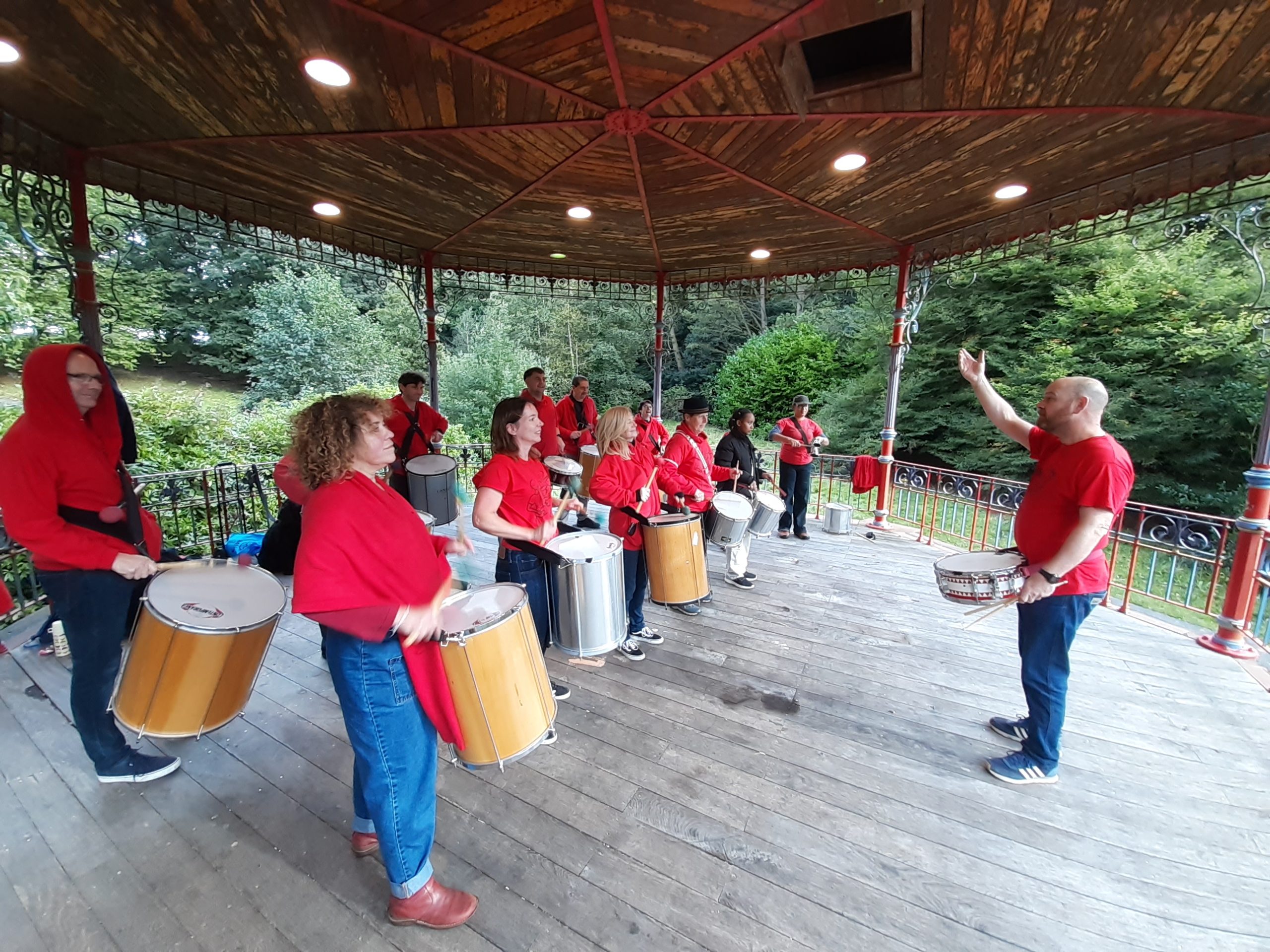 The band were allowed onto the bandstand in Sefton Park upon an island, where they played two sets to appreciative passers by in the park.
